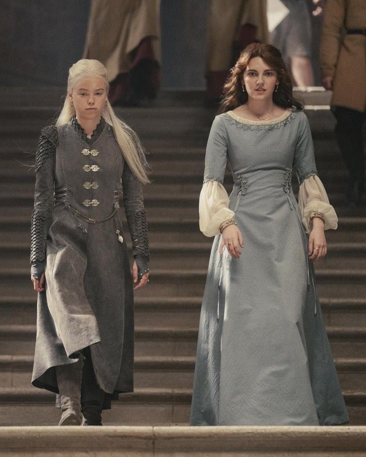 One of them features shimmering platinum-blonde hair, striking blue eyes, and a sleek, elegant black gown for a bold yet timeless look.