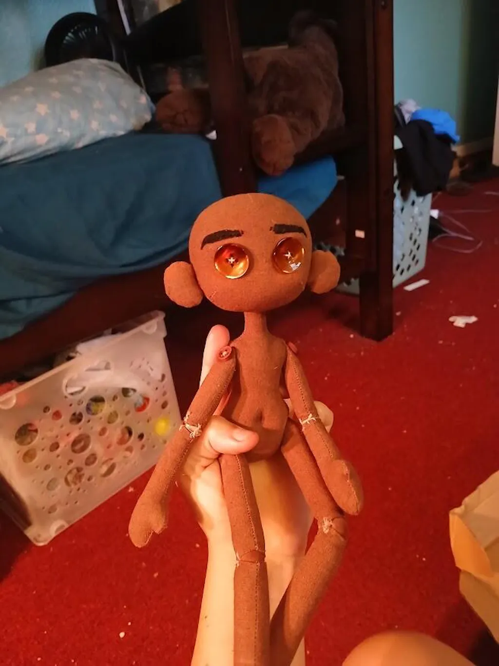 Material: Fabric, Cotton, Plastic or wooden buttons, Yarn, Wooden jointed ball