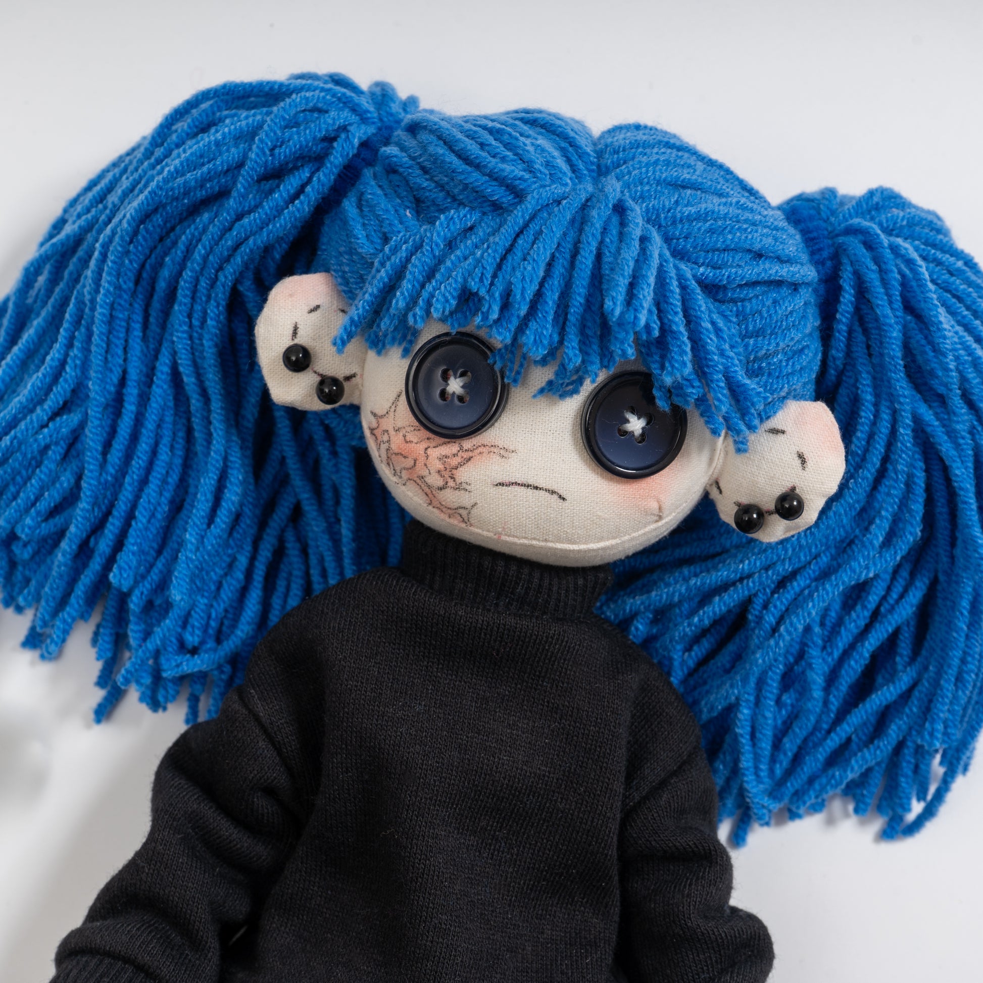 Step into the enigmatic world of Sally Face with this intricately crafted handmade art doll. Featuring his signature long blue pigtails, mysterious expression, and carefully detailed outfit, this doll perfectly captures the essence of the quiet yet kind-hearted protagonist. A lover of video games, heavy metal music, and his beloved cat Gizmo, Sally Face’s character is one of depth and intrigue. Thoughtfully designed with high-quality materials, this art doll is a must-have for fans who cherish the eerie yet heartfelt atmosphere of his story.