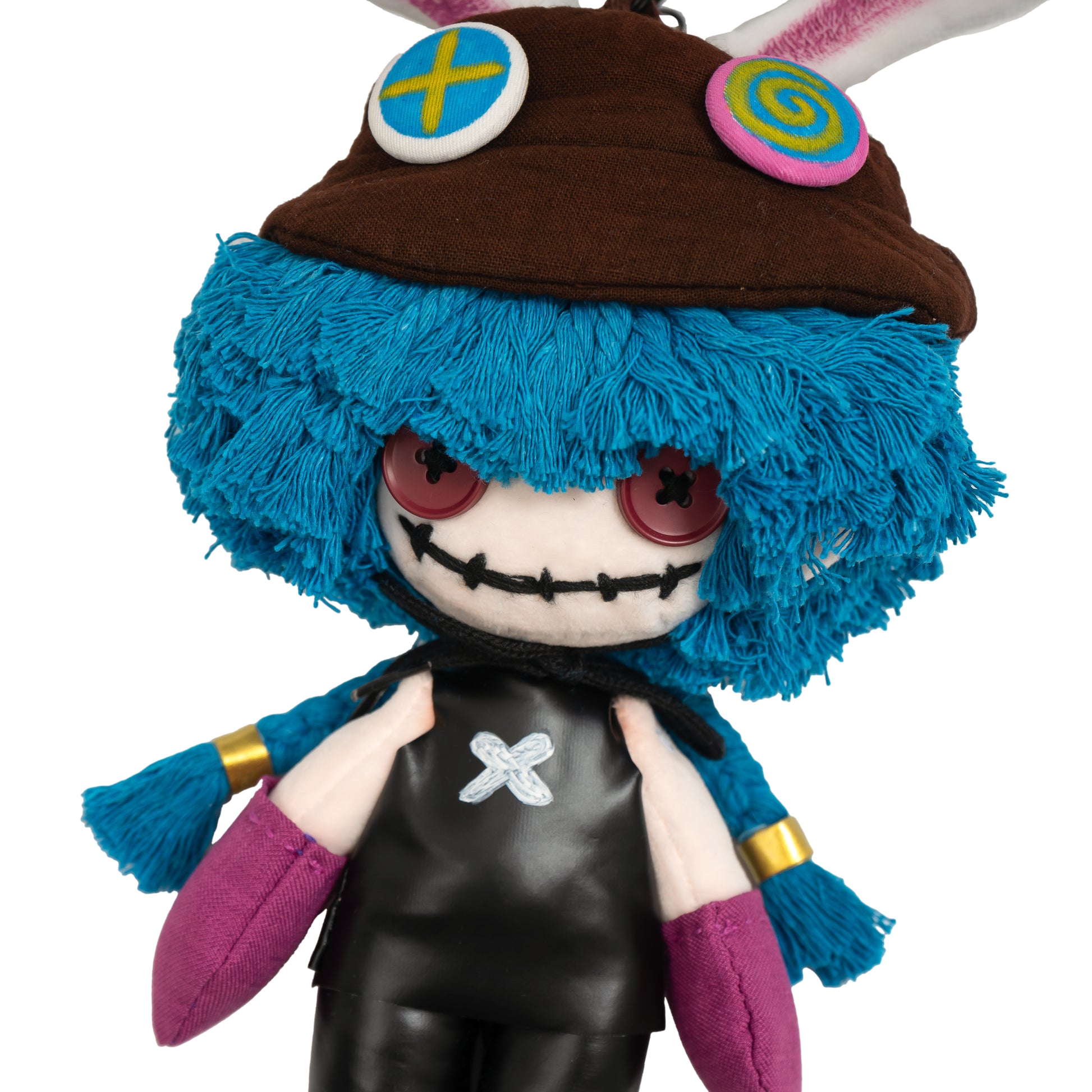 Wearing a sleek black faux-leather jumpsuit and a soft brown cap perched between her long, expressive bunny ears, Isha isn’t just here to look cool, she is cool. With striking red button eyes and short blue hair, she brings a sharp edge to any collection, like she just stepped out of the shadows of Zaun or Piltover’s underworld.